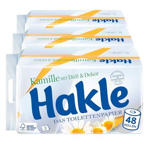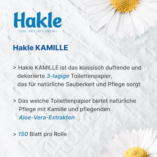 - Das Hakle Kamillenpapier verfügt über einen Kamillenduft und ein Kamillenblüten-Dekor