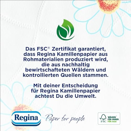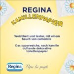 - Regina Kamillenpapier ist ein sanftes und zuverlässiges Toilettenpapier. das dezent nach Kamille duftet. womit es seit Jahren die Herzen aller Käufer erobert